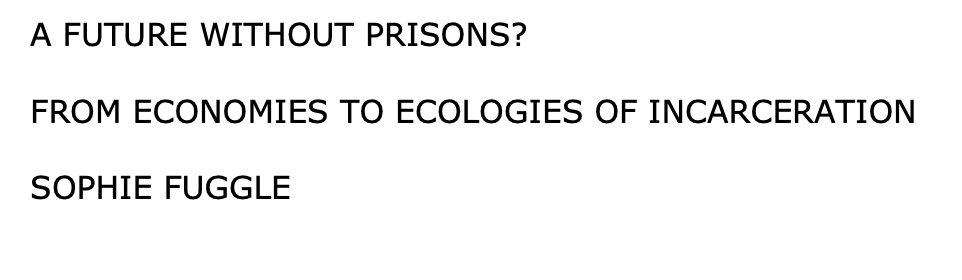 Fuggle S. (2019) ‘A future without prisons: From economics to ecologies of incarceration’